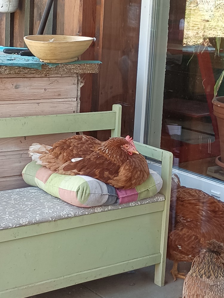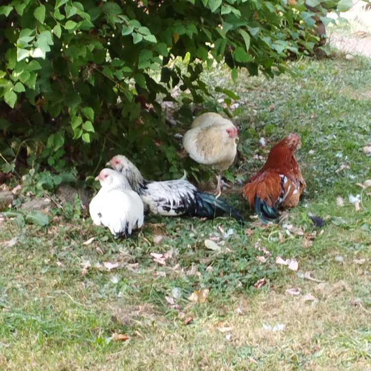 Im Schnitt leben hier 15 Hühner, Zwerghühner, welche hier geschlüpft sind, gerettete Legehennen und Grünleger (diese Hühner legen tatsächlich grüne Eier!).