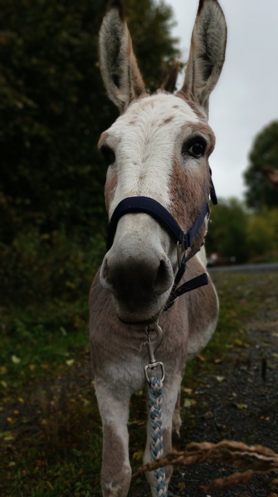 Eselwallach Manfred ist 11 Jahre alt und unfassbar neugierig.